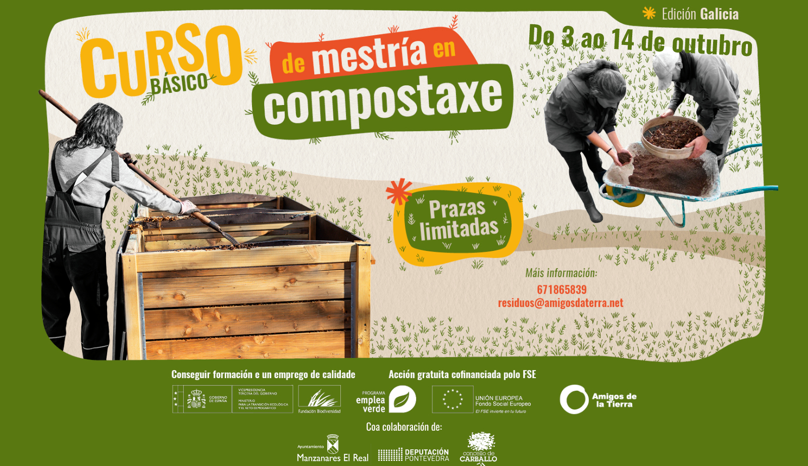 Dende a organización Amigos da Terra, levamos anos promovendo a compostaxe como unha das ferramentas máis importantes para camiñar cara ao residuo cero, reducir  a cantidade de residuos orgánicos e contribuír á loita contra a emerxencia climática. Agora coa recentemente aprobada Lei de Residuos e solos contaminados para unha Economía Circular, que obriga a todos os municipios a recoller a súa materia orgánica separada e a tratala priorizando a compostaxe, contamos co contexto perfecto para poñer en marcha esta formación.