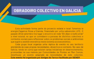 O sábado 28 de xaneiro desde Amigas da Terra organizamos unha xornada centrada no impulso de comunidades enerxéticas, poñendo o foco no papel impulsor que poden […]