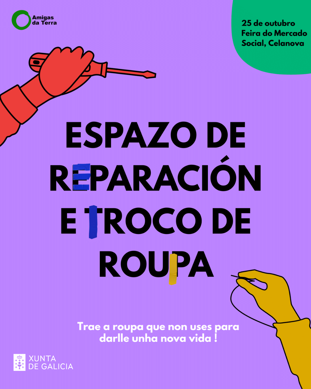 Esya fin de semana celebramos, xunto con outras moitas orhanizacions sociais e ambientais galegas, un mercado social no que estareos celebrando o dia internacional da reparabilidade por todo o grande! Teremos un espazo de troco de ropua ao que podes traer as prensas que xa non uses e levar prensas novas preparadas para circular por [...]